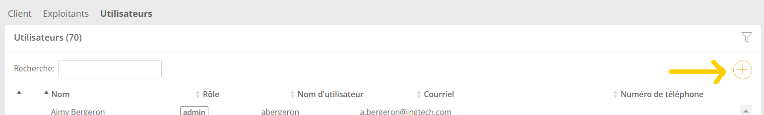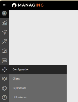 1. S'identifier à l'application web managING ( www.ingtechmanaging.com ) avec un compte de type Admin puis naviguer à la page Utilisateurs sous l'onglet Configuration .2. Utiliser le boutonpour ajouter un véhicule ou une remorque.