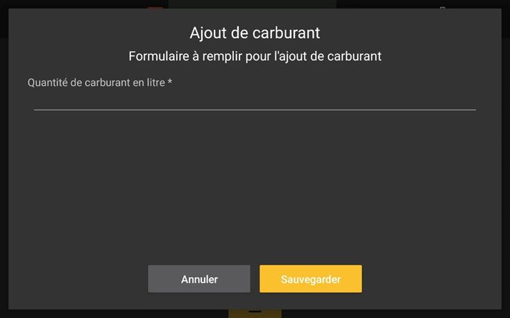 À noter que si vous appuyez sur « Annuler », la tâche sera quand même enregistrée mais le formulaire sera jugé incomplet. Le nom de la tâche s’affiche sur le bouton de changement d’activité dans l’écran principal, dans ce cas « Carburant ».