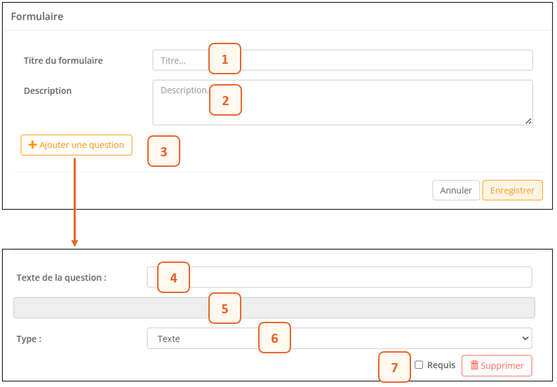 - Champ réservé qui peut contenir de l’information additionnelle selon la sélection du type de question