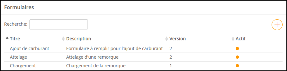 Sous l’onglet « Formulaires », appuyer sur le bouton " + " pour ajouter un formulaire.