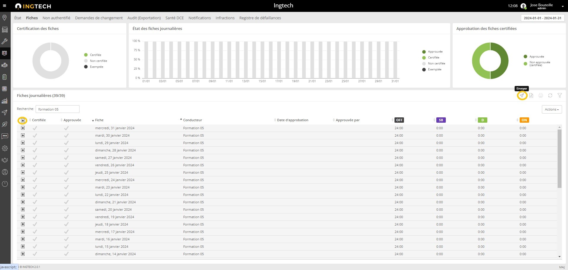2/Sélectionnez en totalité ou partiellement les fiches puis "Envoyer"