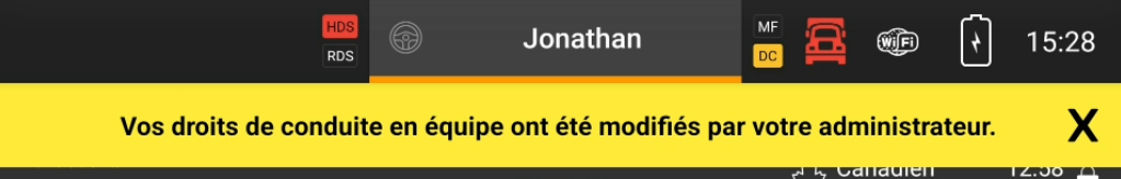 Le conducteur sera automatiquement notifié si une permission liée aux heures de conduite a été modifiée par son administrateur.