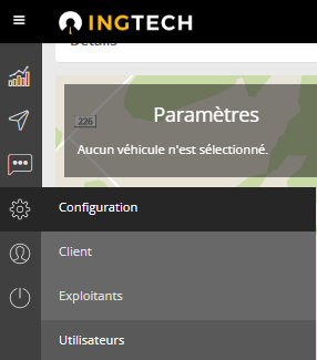 Configuration du compte Conducteur pour autoriser la conduite en équipe1. S'identifier à l'application web managING ( www.ingtechmanaging.com ) avec un compte de type Admin puis naviguer à la page Utilisateurs sous l'onglet Configuration .