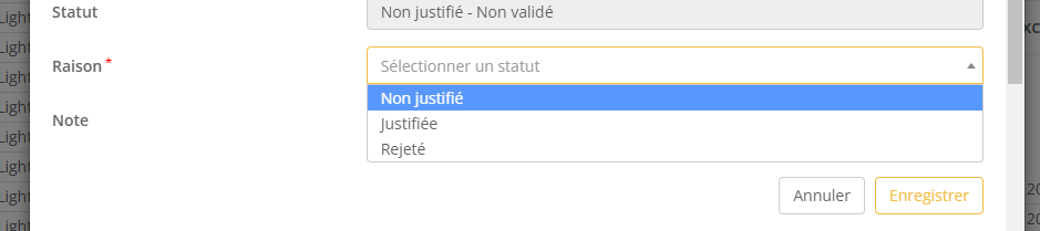 - Inscrivez une raison et une note et appuyez sur « Enregistrer ».