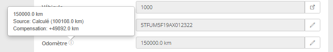L'infobulle d'odomètre ou d'heures moteur permet de valider toutes les informations