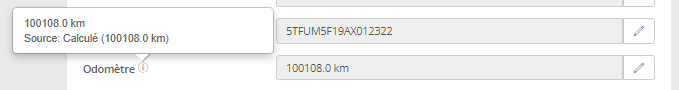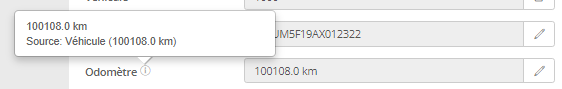 - Placer le curseur sur l'infobulle Odomètre ou Heure moteur pour visualisé la source. La source indiquera Véhicule ou Calculé.
