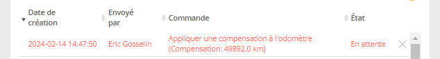 - Une nouvelle commande de compensation sera placé en attente. Un fois que cette commande sera Envoyée, attendre une nouvelle communication puis valider la nouvelle lecture.